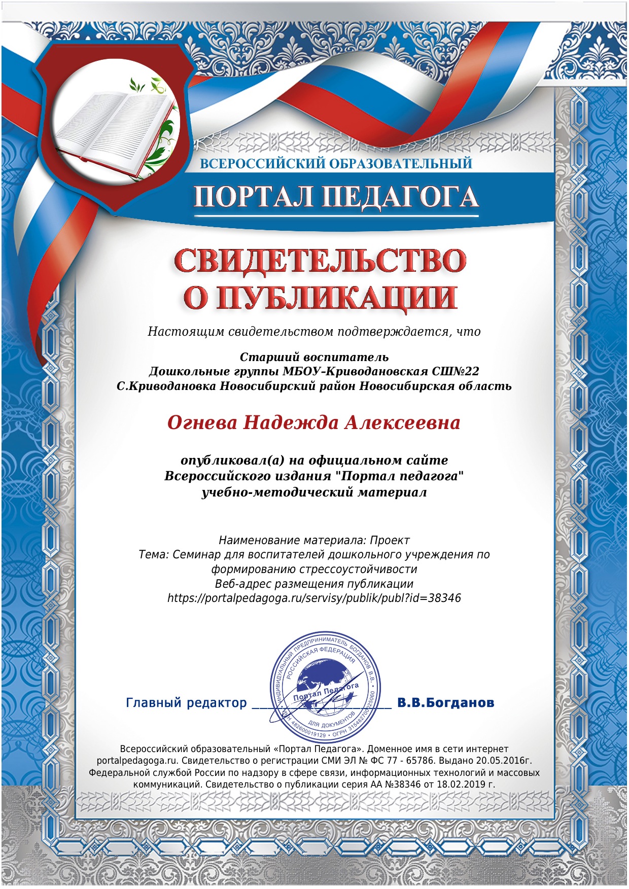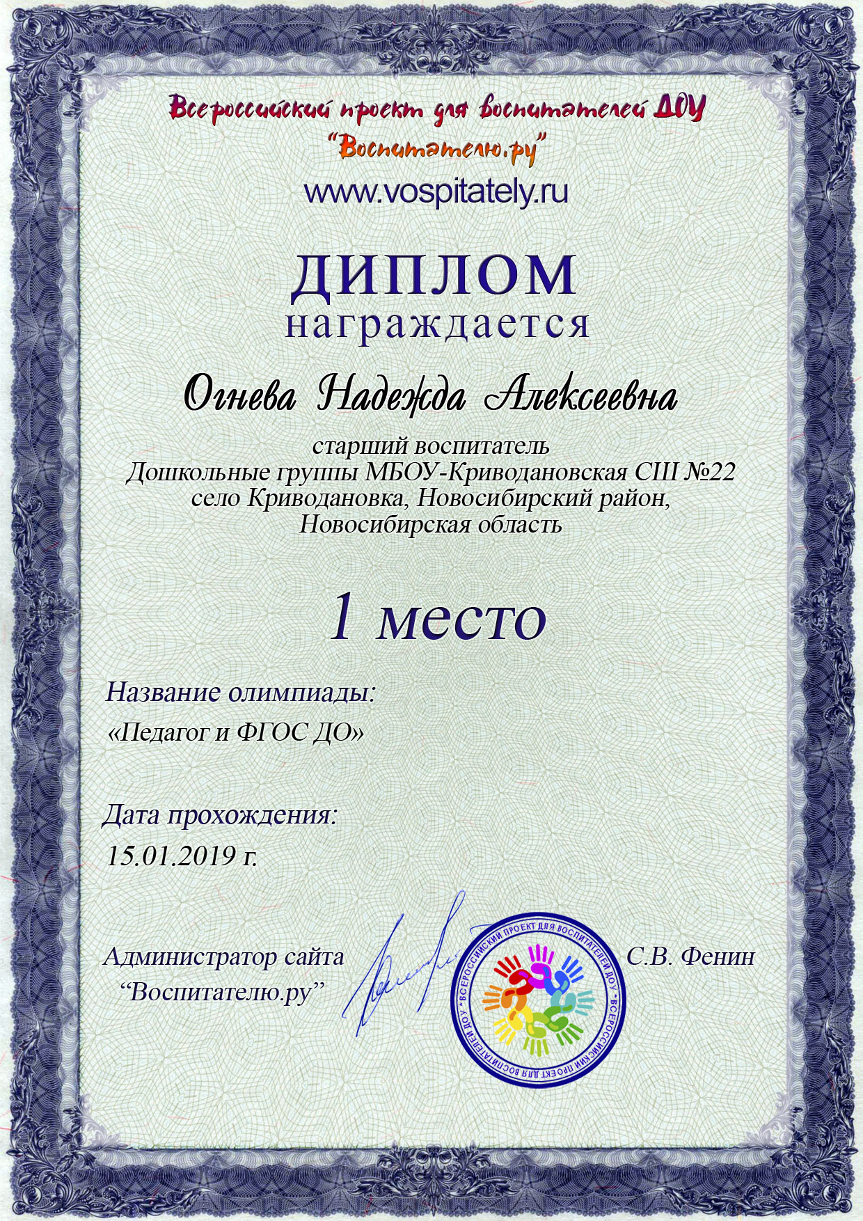 Страничка старшего воспитателя